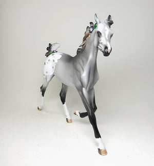 ALBENA - OOAK GREY APPALOOSA YEARLING WITH FLOWERS MODEL HORSE - 3/7