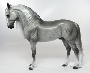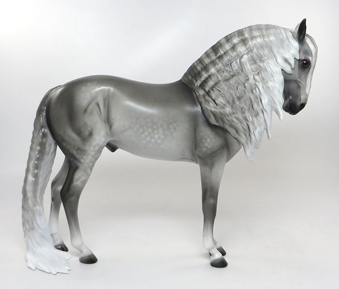 PARRANDO-OOAK FLEABIT DAPPLE GREY LONG MANE AND TAIL ANDALUSIAN MODEL HORSE 8/26