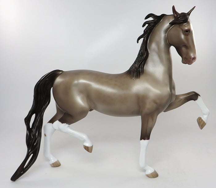 TIKKI-OOAK BLACK CHAMPAGNE SADDLE BRED MODEL HORSE WITH AMBER EYES CUSTOMIZED BY JT & PAINTED BY SHERYL LEISURE 8/25