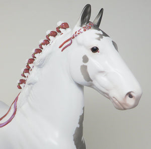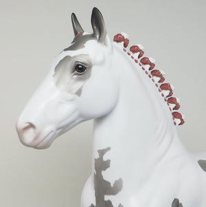 WILL BE LOVED - OOAK GREY PINTO TROTTING DRAFTER MODEL HORSE - 3/16
