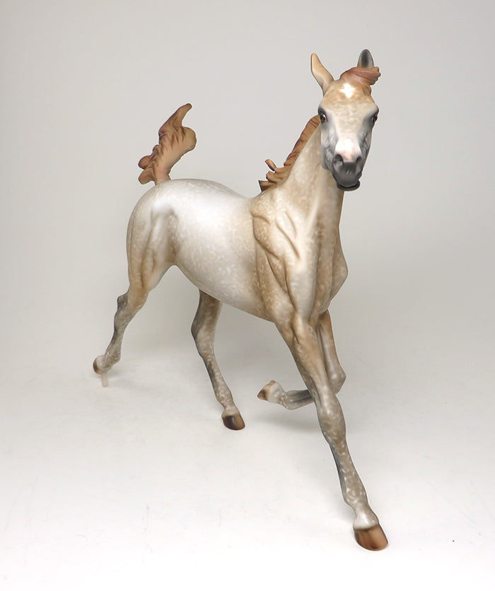 ZANY - OOAK CHESTNUT GOING GREY YEARLING MODEL HORSE BY AL - 3/4