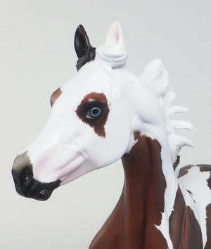 BLUE EYES "SHOW GIRL" - ETCHED PINTO YEARLING MODEL HORSE BY SHERYL LEISURE - 3/17