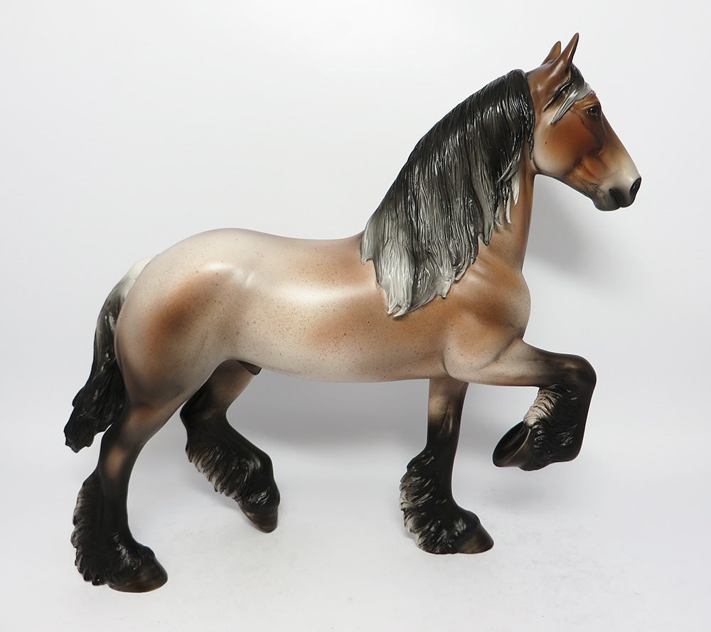 BOOGIE BOTTOMS-OOAK BAY ROAN TROTTING DRAFTER MODEL HORSE 9/1/17