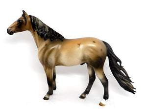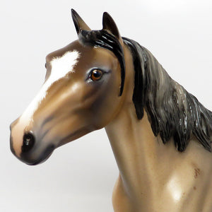 BRONC BUSTER-OOAK BUCKSKIN ROAN SPANISH MUSTANG MODEL HORSE BY JULIE KEIM 03/15/17