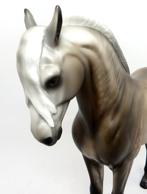 ESMERELDA-OOAK BAY GOING GREY STAR DAPPLED ANDALUSIAN MARE MODEL HORSE BY SHERYL LEISURE