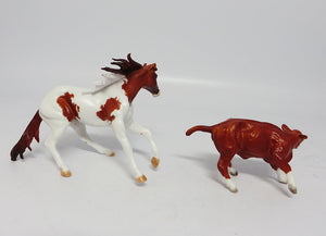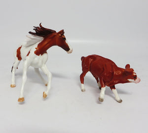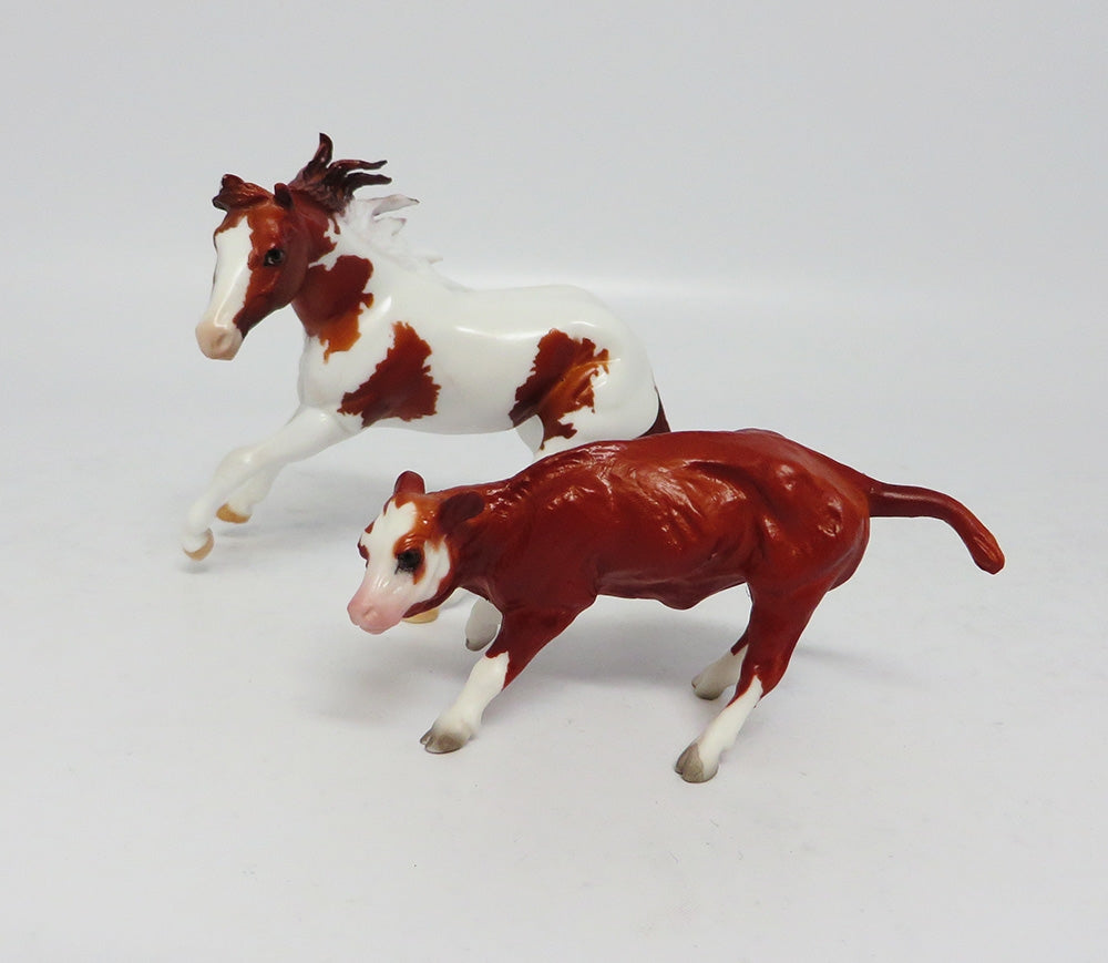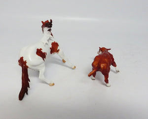 RUBY AND CASH-OOAK CHESNUT PAINT CUTTER AND CALF MODEL HORSE 7/24/17