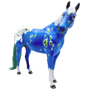 • Custom Mane, Forelock and Hand Carved Peacock "Eyes" throughout the tail