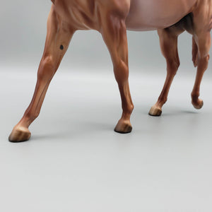 • The SAMPLE of Alfalfa - Chestnut Appaloosa Mule by Dawn Quick is a limited-edition collectible art piece, with only 30 of its kind. It is the first piece to set the design for the entire series, making it a valuable addition to any model horse collection.
