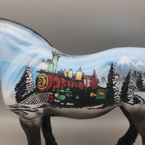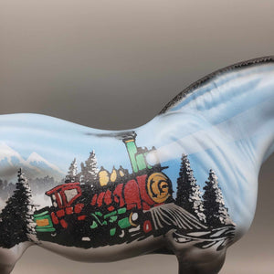 Holiday Train OOAK Blue & Black W/ Winter Train Scene Deco Draft By Dawn Quick Holiday Sale HS23