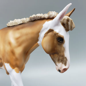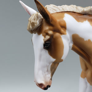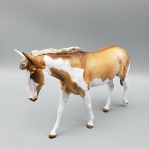 This beautiful Maisy OOAK Dunalino Pinto Pebble Mule is created by experienced artist Julie Keim for AoTH23, offering collectors the chance to own a unique and special new pebble mule model horse collectible. This piece is unique and artisan crafted, making this the perfect addition to any collector's stable.