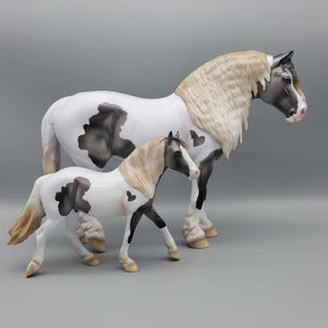 Discover the Old Friends LE20 Grey Pinto Heavy Draft by Ashley Palmer AoTH23, a sweet heavy draft mare model horse with removable flowers in the mane inspired by Emily Schmautz's artwork. This elegant piece is perfect for a horse-lover's collection. Make your space come alive with this unique show-stopper!