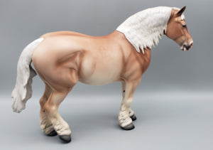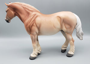 Step into a dreamy pasture with this chestnut pangare heavy draft gelding from Angela Marleau. His sweet gentle disposition will tug at your heartstrings and his lovely heavy draft model horse design will have you daydreaming for hours. He's the perfect companion for quiet afternoons! (Just don't tell your real horse!)
