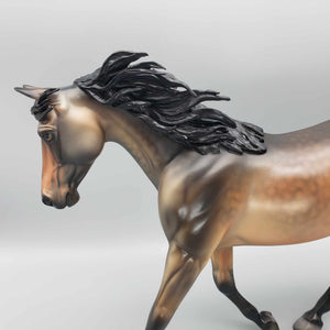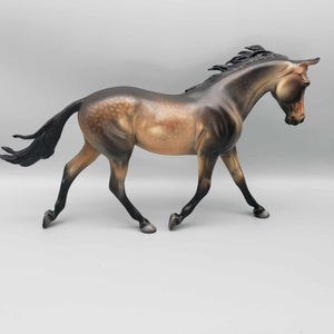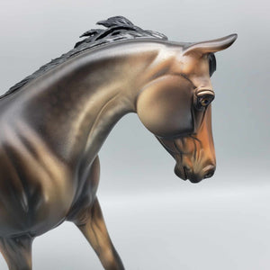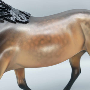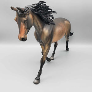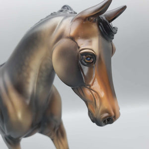 This One of a Kind Reba Dappled Bay is a unique and special collector's item. Boasting gorgeous bronze hues and beautiful shading by Dawn Quick, it is a must-have for any model horse enthusiast. This exquisite collectible is sure to elevate any collection.