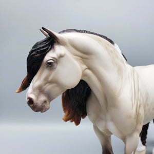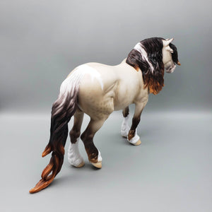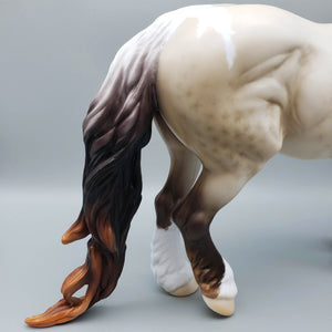 Introducing the majestic, special SAMPLE of Windsor Custom Reverse Dappled Champagne Heavy Draft Stallion! Make your collection neigh-say with this beautiful Ellen Robbins-crafted model horse. The perfect addition to your stable - you won't want to miss out on this showstopper!