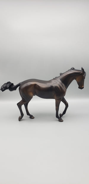 Slew Came Through custom pinned ear thoroughbred by Dawn Quick is the perfect addition for any model horse-lover's collection. Modeled after a legendary racehorse, their beauty and grace have been captured in the exquisite detailing of this eye-catching AoTH23 model horse piece.