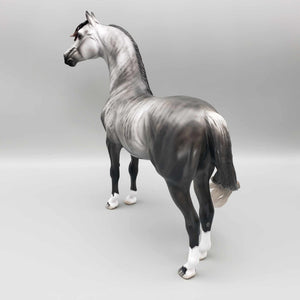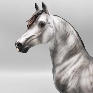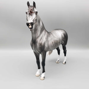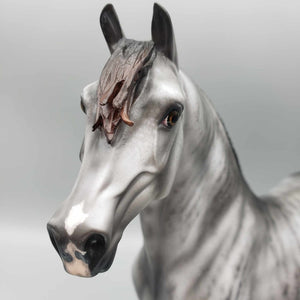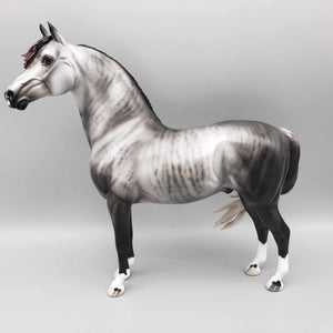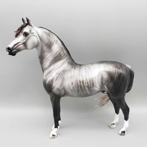 Go for a ride on the wild side with Tyrant OOAK grey skewed/ brindle Morgan! This delightful model horse collector's item by Jess Hamill for AoTH23 is sure to turn any horsin' around enthusiast's head! Show off your 'stable' sense of style and add Tyrant to your collection today!