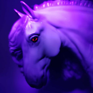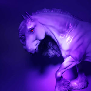 Bring home the spooky charm of Canterville Ghost Sir Simon with this unique collectible! This model horse has all the features of the ghostly character himself, with matted grey hair, manacles, and eerie red eyes. Perfect for any collector or fan of classic literature!