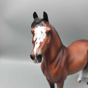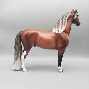 Meet Gulliver, the whimsical dappled Silver Bay Morgan painted by Ellen Robbins for the Classic Literature Series 2024. This collectible model horse boasts unique markings that weave a tale of adventure. Perfect for any equestrian enthusiast and book lover!!