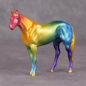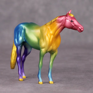 “I Might Try” Rainbow chip stock horse with gold leaf effect mane, tail, and hooves