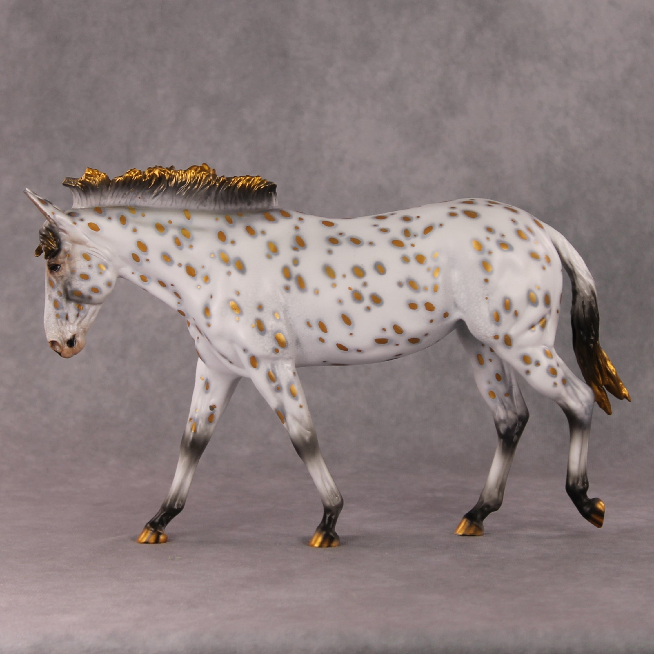 Julia OOAK Golden Leopard Appaloosa with Silver Accents Mule By Dawn Quick HS24