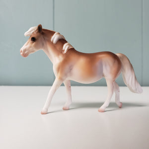 "Mouse," drawing inspiration from "The Lion and The Mouse," is a Stone Horses creation that portrays "Mouse" as an unlikely hero, demonstrating bravery through an act of kindness and compassion. Masterfully painted in chestnut pangare by Ellen Robbins, "Mouse" stands as a significant treasure in a compact form, perfect for any collector's shelves.