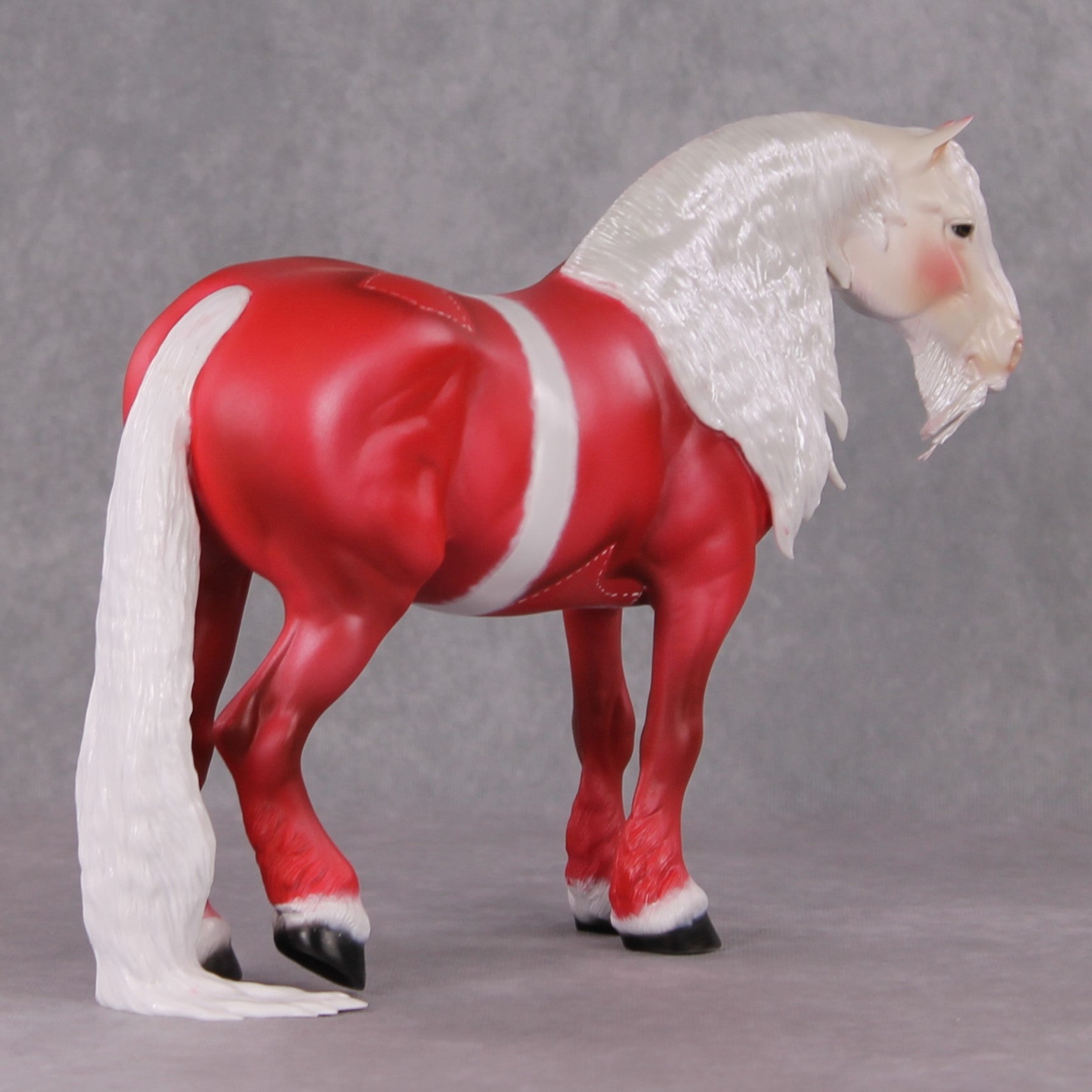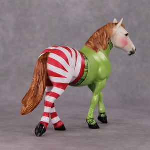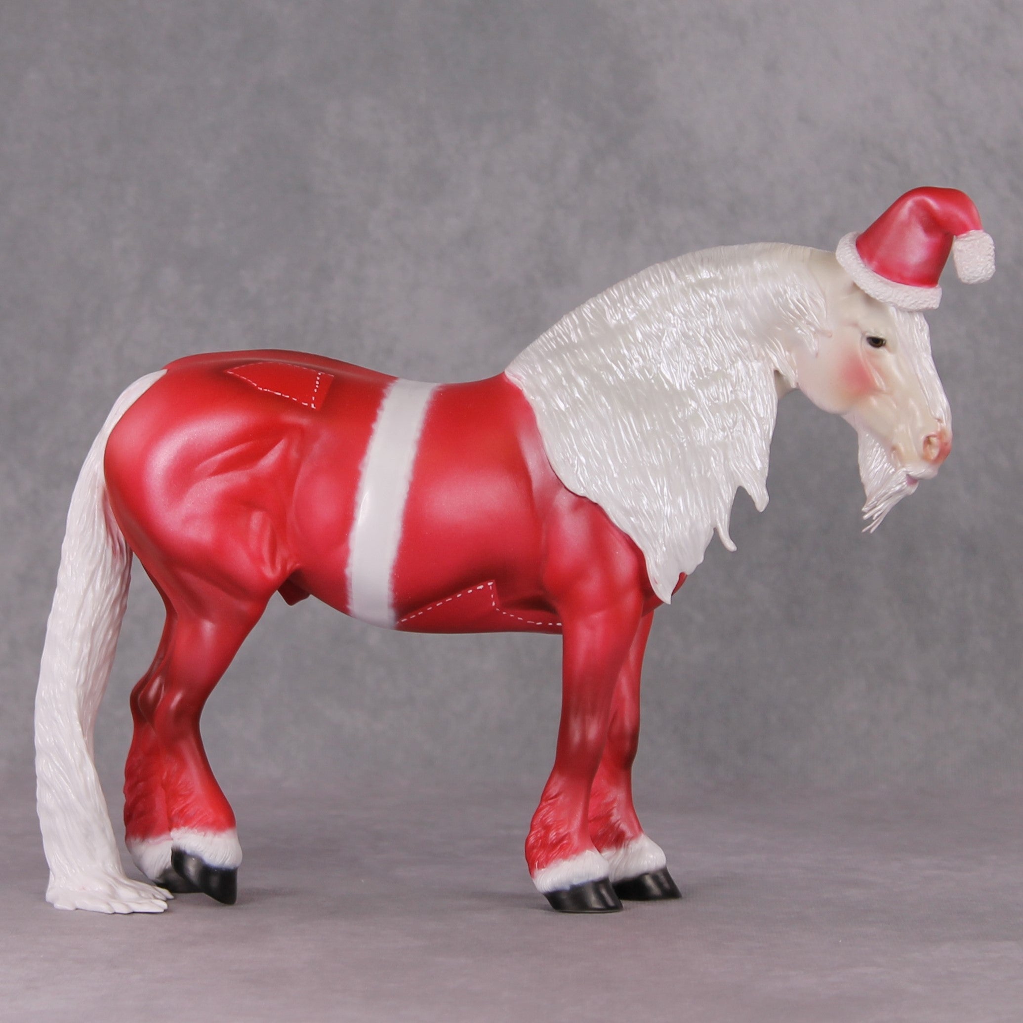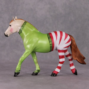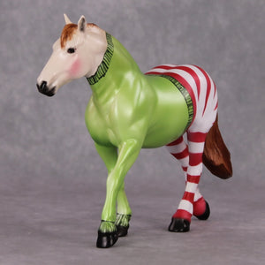 Nicholas sports all the classic Santa attire and attitude. He is joined by his favorite elf friends. Peppermint, with his flowing mane and tail, proudly showcases a green sweater that perfectly complements his body adorned with vibrant red candy stripes. His appearance is a delightful blend of festive cheer and elegance, capturing the essence of the holiday season. Alongside him is his loyal friend Buddy, who exudes a similar festive charm. Buddy is dressed in a splendid red sweater, and his body is wrapped in light green candy stripes, creating a harmonious and eye-catching contrast. Together with Nicholas, Peppermint and Buddy bring a touch of holiday magic wherever they go, spreading joy and warmth with their festive attire and cheerful presence. Their coordinated outfits and joyful spirits are sure to brighten any celebration and leave a lasting impression on everyone they meet.