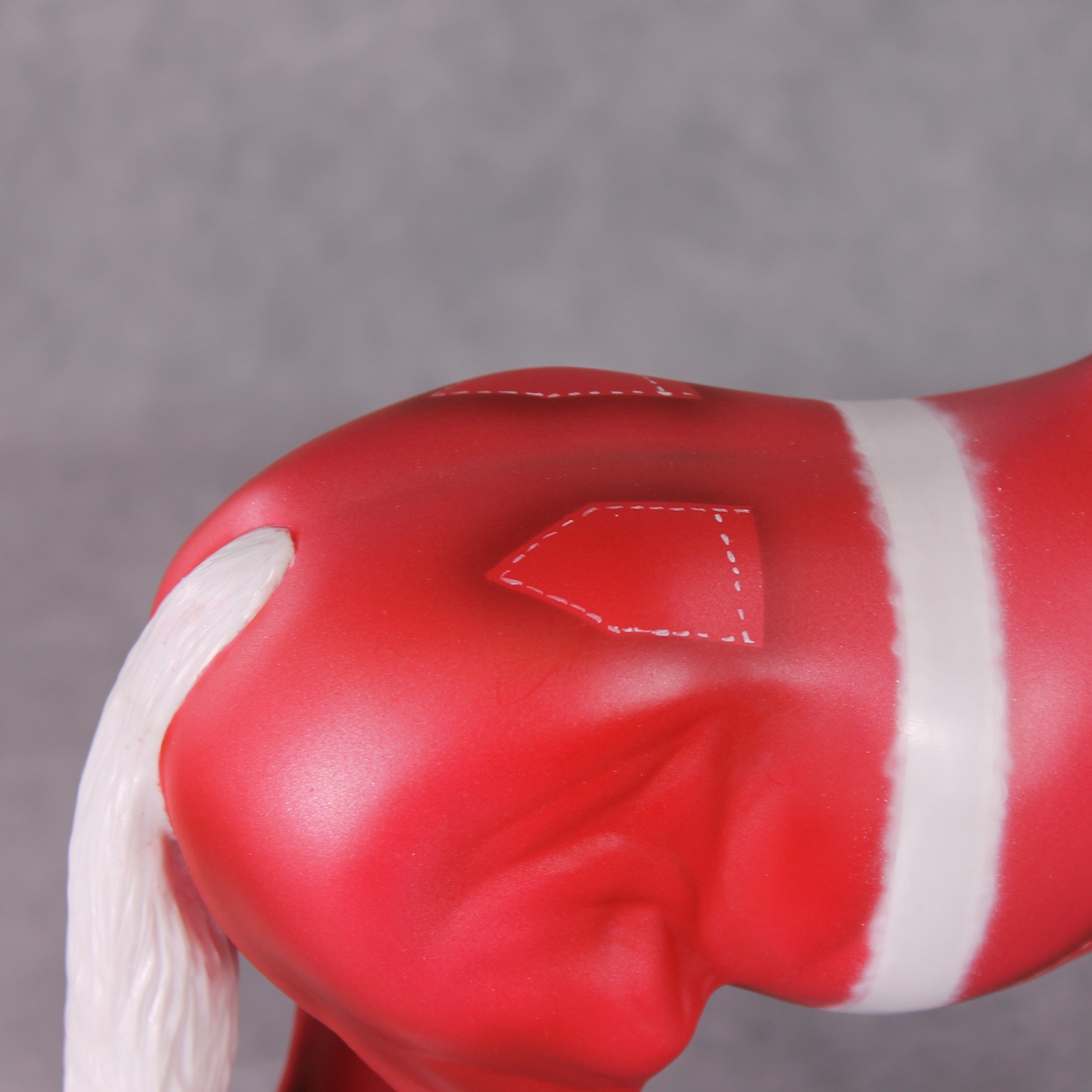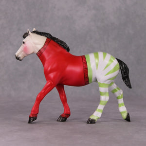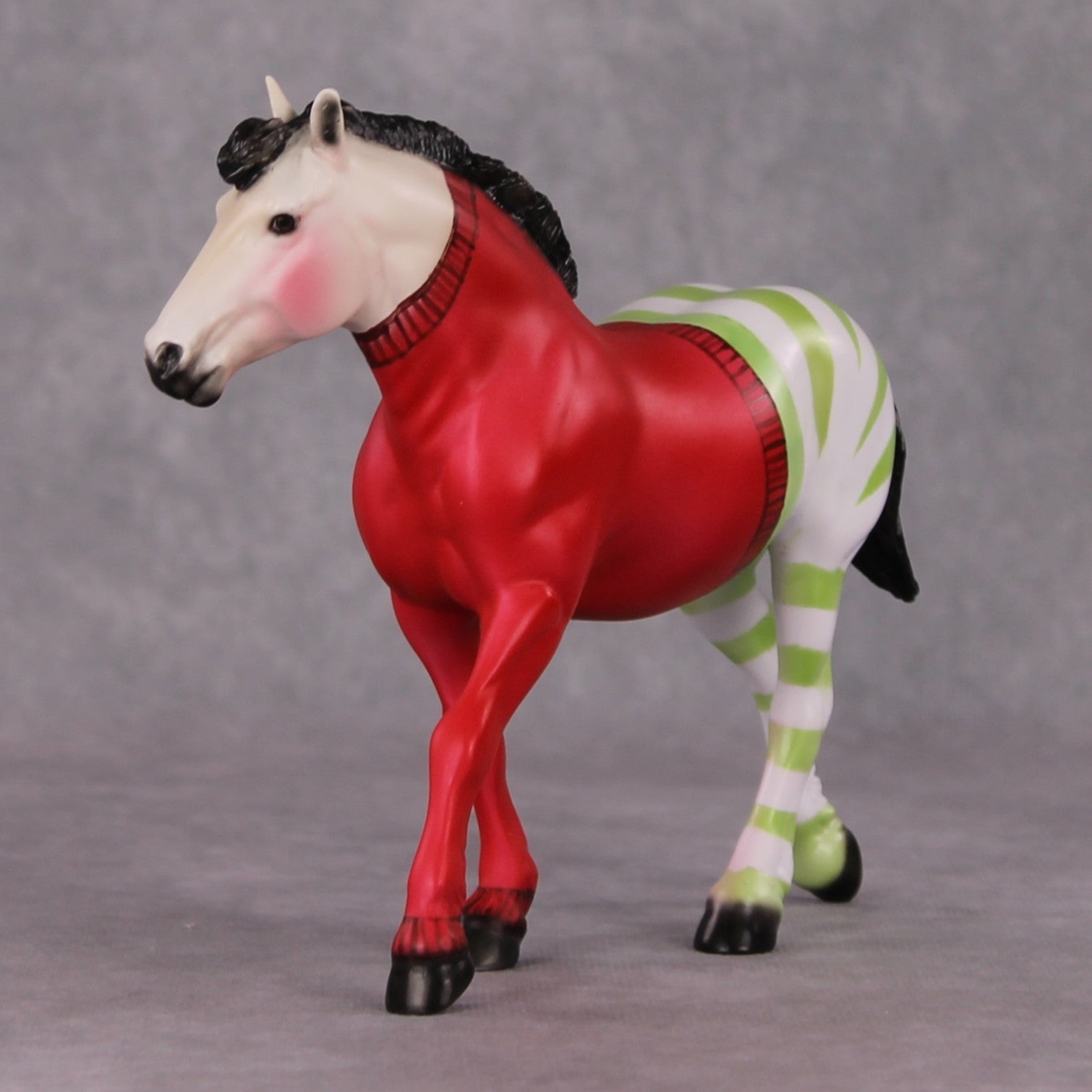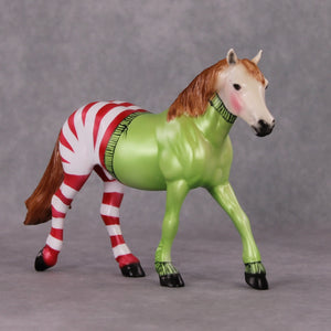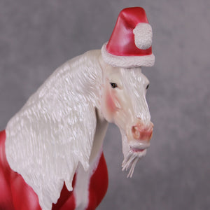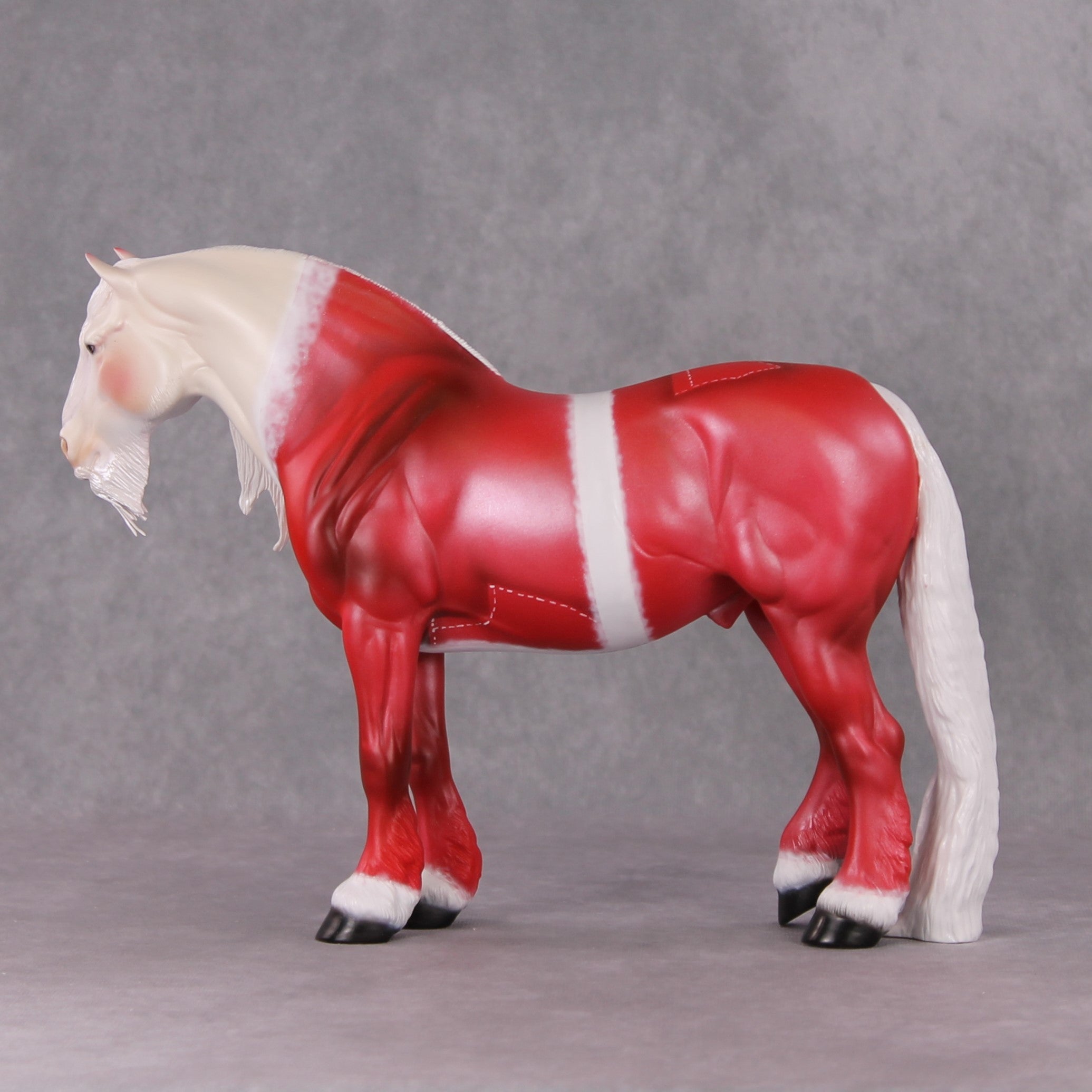 Nicholas sports all the classic Santa attire and attitude. He is joined by his favorite elf friends. Peppermint, with his flowing mane and tail, proudly showcases a green sweater that perfectly complements his body adorned with vibrant red candy stripes. His appearance is a delightful blend of festive cheer and elegance, capturing the essence of the holiday season. Alongside him is his loyal friend Buddy, who exudes a similar festive charm. Buddy is dressed in a splendid red sweater, and his body is wrapped in light green candy stripes, creating a harmonious and eye-catching contrast. Together with Nicholas, Peppermint and Buddy bring a touch of holiday magic wherever they go, spreading joy and warmth with their festive attire and cheerful presence. Their coordinated outfits and joyful spirits are sure to brighten any celebration and leave a lasting impression on everyone they meet.