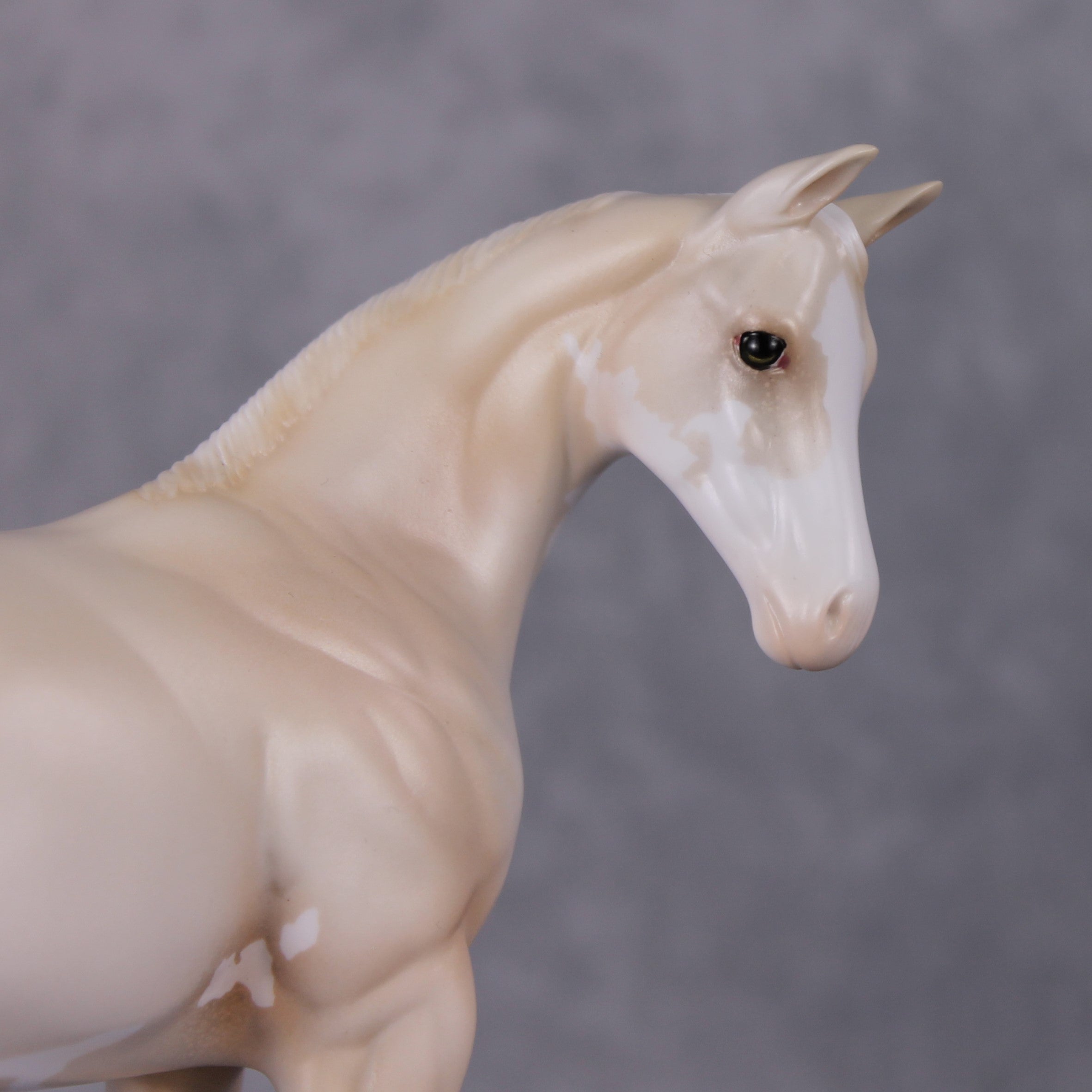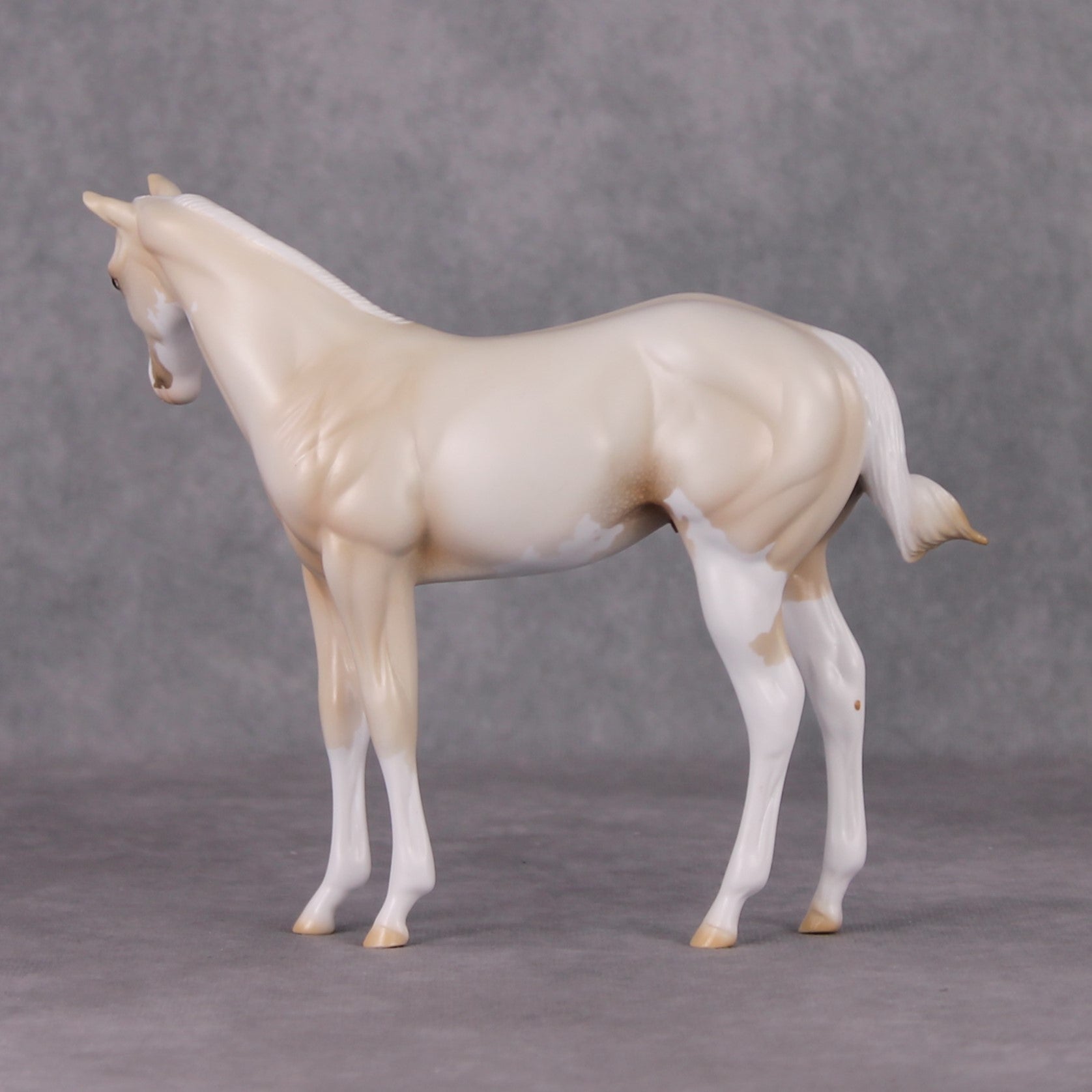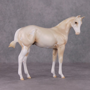 Plot Twist - Our version or Oliver Twist is a scrappy and adventurous cream champagne sabino custom colt weanling with an inquisitive turned head and twisty tail painted By Ashley Palmer! Oliver is looking for a meal and a family to love! This little orphan is ready to find his family with you!