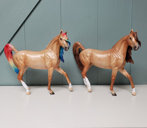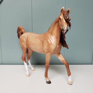 Introducing Scheherazade, the enchanting Arab mare in two versions - Queen, with luxurious light chestnut tones, and Storyteller, with a mane and tail as colorful as the stories she weaves. Painted by Ellen Robbins as part of the Classic Lit Series 2024, this limited edition model is a must-have for any collector.