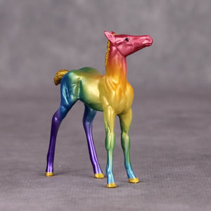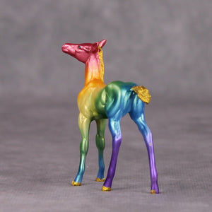 “The Envelope” rainbow foal chip with gold leaf effect mane, tail, and hooves