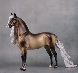 Veronika is a graduate student studying cryptozoology under the Professor, travelling the world to find weird and wonderful creatures for her thesis. She loves coffee and washi tape and camping, and yes, in that order. Veronika is a silver black Morgan mare with a long, wavy cob-style hairdo. She is a limited run of 5 with a non-custom counterpart run of 20 for Moonlight Madness 2024