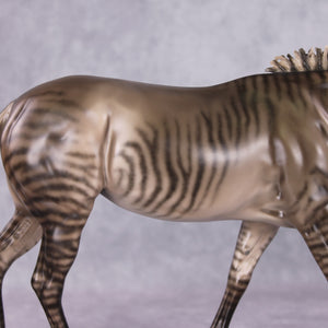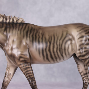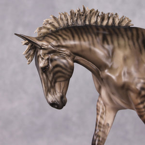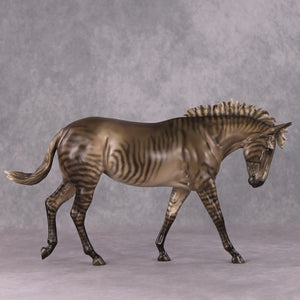 Mona took our large Mule mold and tucked her head, gave her a fuzzy standing-up mane, and swishy tail for extra personality. Sheryl then finished her to this amazing zedonk design, she is loaded with tiny details we hope you take the time to click through and appreciate! Just phenomenal!