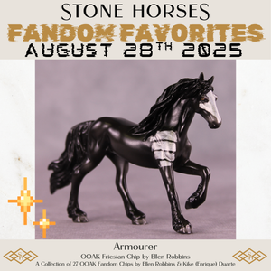 As much as we'd like to think everybody is 100% focused on Model Horses at all times, we know there's so many other fun and interesting fandoms that our community spends time and energy on. This line of chips celebrates that! Launching at 5pm on Thursday August 28th - the same time the doors open for a very famous Dragon based Convention in Georgia - these chips pull in elements from Cons, Faires, Carnivals, Video Games, and more. Painted by Ellen Robbins and Kike (Enrique) Duarte, there is something in here for everybody!