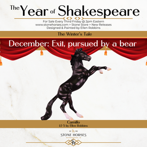 It is with bittersweet celebration that we close out this year's Classic Literature Year of Shakespeare line by recognizing The Winter's Tale, with two lovely factory customized Ideal Stock Horses, and six runs of five chips each - all designed and painted by Ellen Robbins.