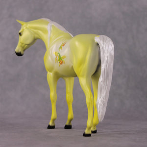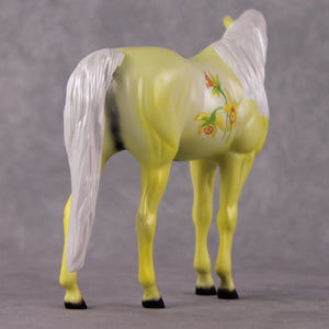Dawn Quick selected a beautiful shade of yellow accented with a dainty flower design for her Pebble Arabian, symbolizing daffodils for Stone Horses’ March Flower Series. Daffodils represent hope and new beginnings and in the Spring herald the arrival of a new season.