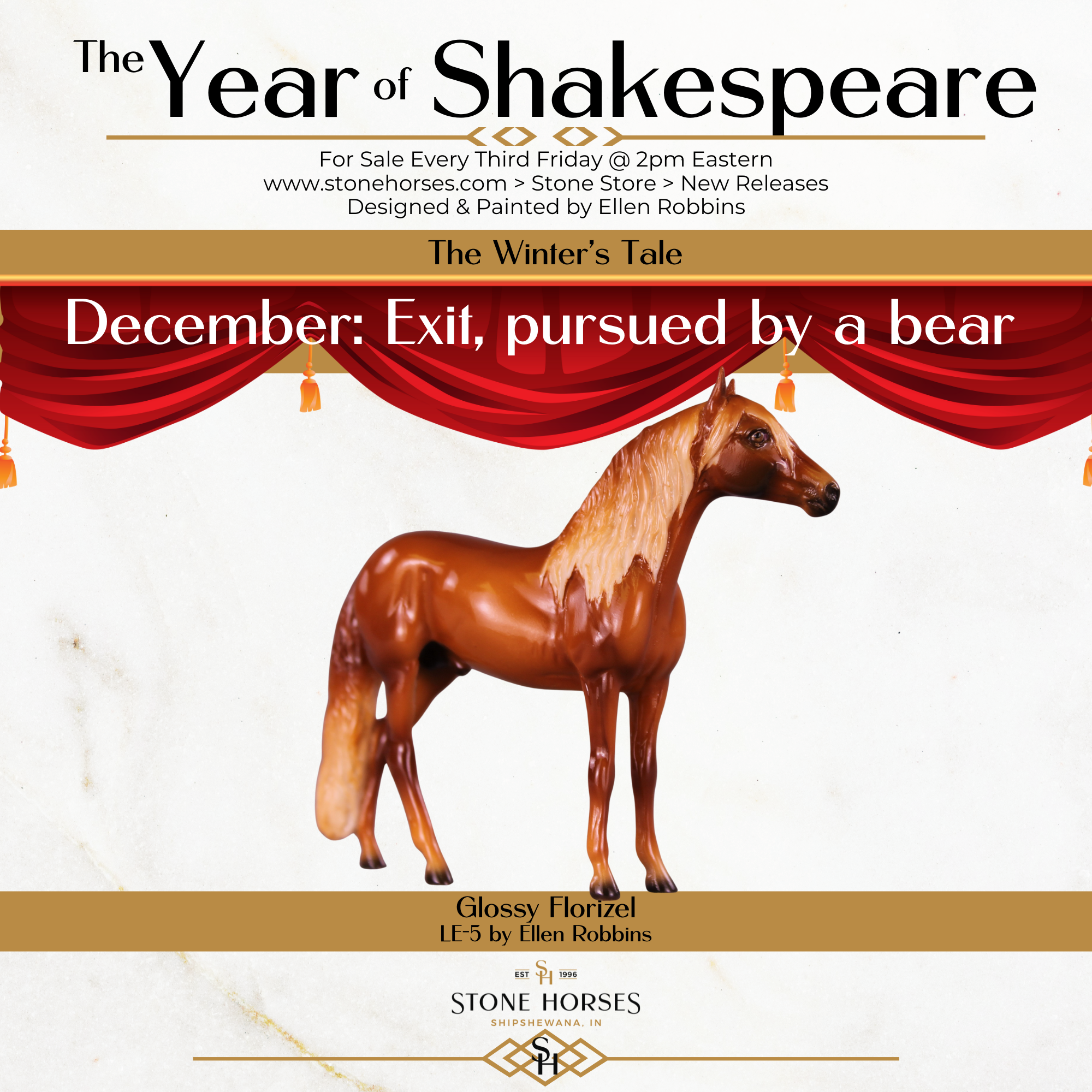It is with bittersweet celebration that we close out this year's Classic Literature Year of Shakespeare line by recognizing The Winter's Tale, with two lovely factory customized Ideal Stock Horses, and six runs of five chips each - all designed and painted by Ellen Robbins.