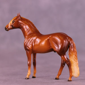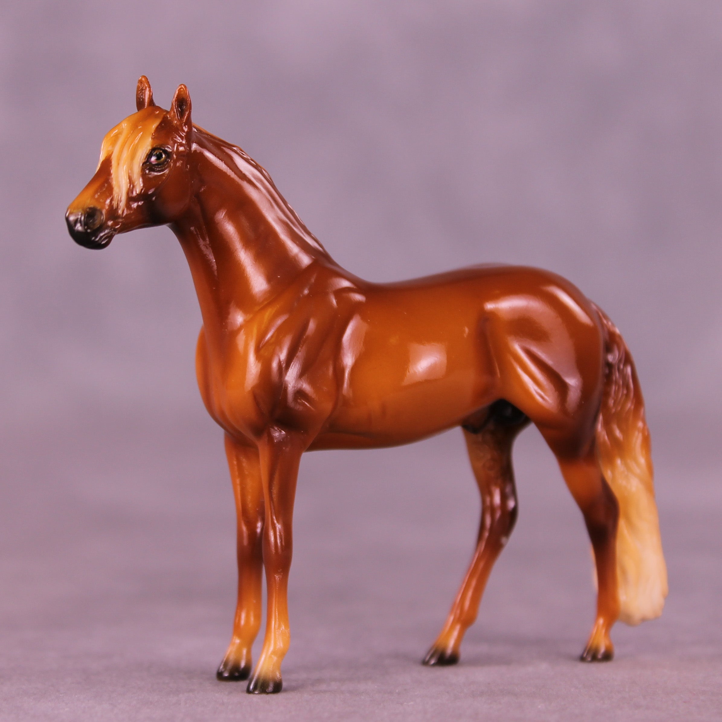 Florizel, the prince of Bohemia who falls in love with a shepherdess. We offer him in two versions on our Chip Andalusian in a gorgeously shaded flaxen chestnut - matte and glossy. This listing is for Glossy Florizel.