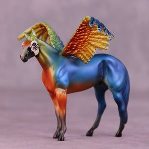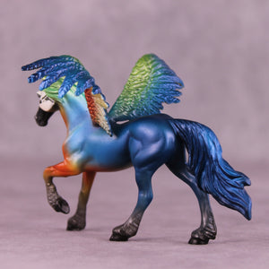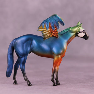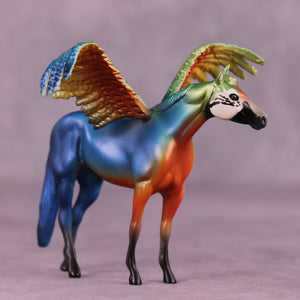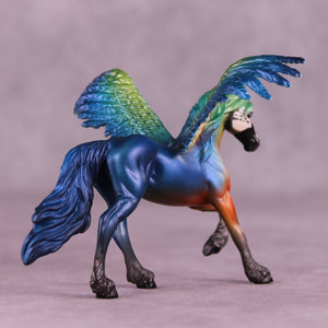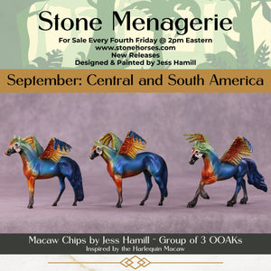 Jess has expertly recreated five different varieties of Macaw, each in a group of three one of a kind pieces with extra customized taking-flight wings! Representing the Blue and Gold Macaw, the Harlequin Macaw, the Hyacinth Macaw, the Military Macaw, and the Scarlet Macaw, these five groups of three OOAKs are ready to ship now with no extra finish options available.