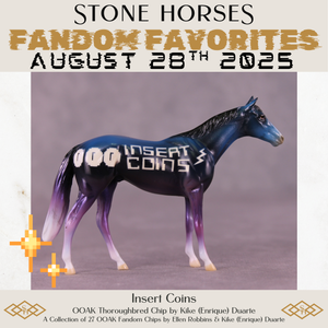 As much as we'd like to think everybody is 100% focused on Model Horses at all times, we know there's so many other fun and interesting fandoms that our community spends time and energy on. This line of chips celebrates that! Launching at 5pm on Thursday August 28th - the same time the doors open for a very famous Dragon based Convention in Georgia - these chips pull in elements from Cons, Faires, Carnivals, Video Games, and more. Painted by Ellen Robbins and Kike (Enrique) Duarte, there is something in here for everybody!