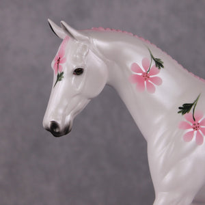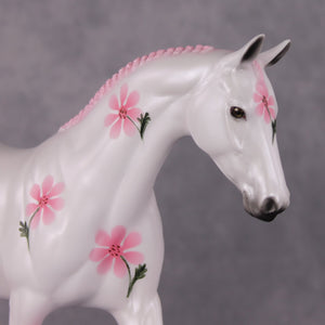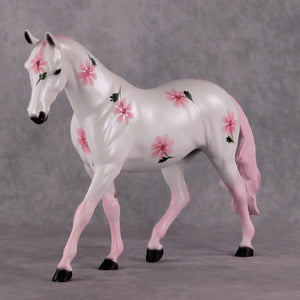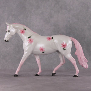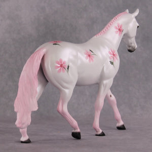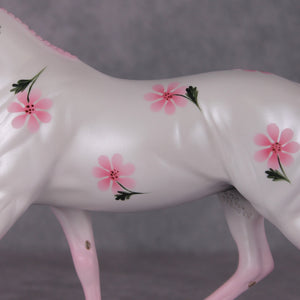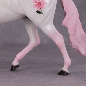 Dawn Quick beautifully captures a strawberry roan to paint on the pony for this month's Flower Series. This month's flower is the Daisy, which symbolizes cheerfulness, beauty and affection.
