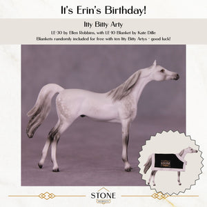 We are hanging onto the Big Artem, but we wanted to create a little piece of him for you to enjoy at home, and celebrate Erin's birthday at the same time! This is Itty Bitty Arty, a mini version of our 1:1 scale Artem. Not only did we miniaturize Artem, we also miniaturized his blanket! Our own Kate Dille hand-made ten black and white Stone logo sheets for Bitty Arty, and we will be randomly including those in ten orders. We may or may not include some other fun bits and surprises - you'll see when you get your boxes! If you know any Leos, you know we don't do anything halfway!