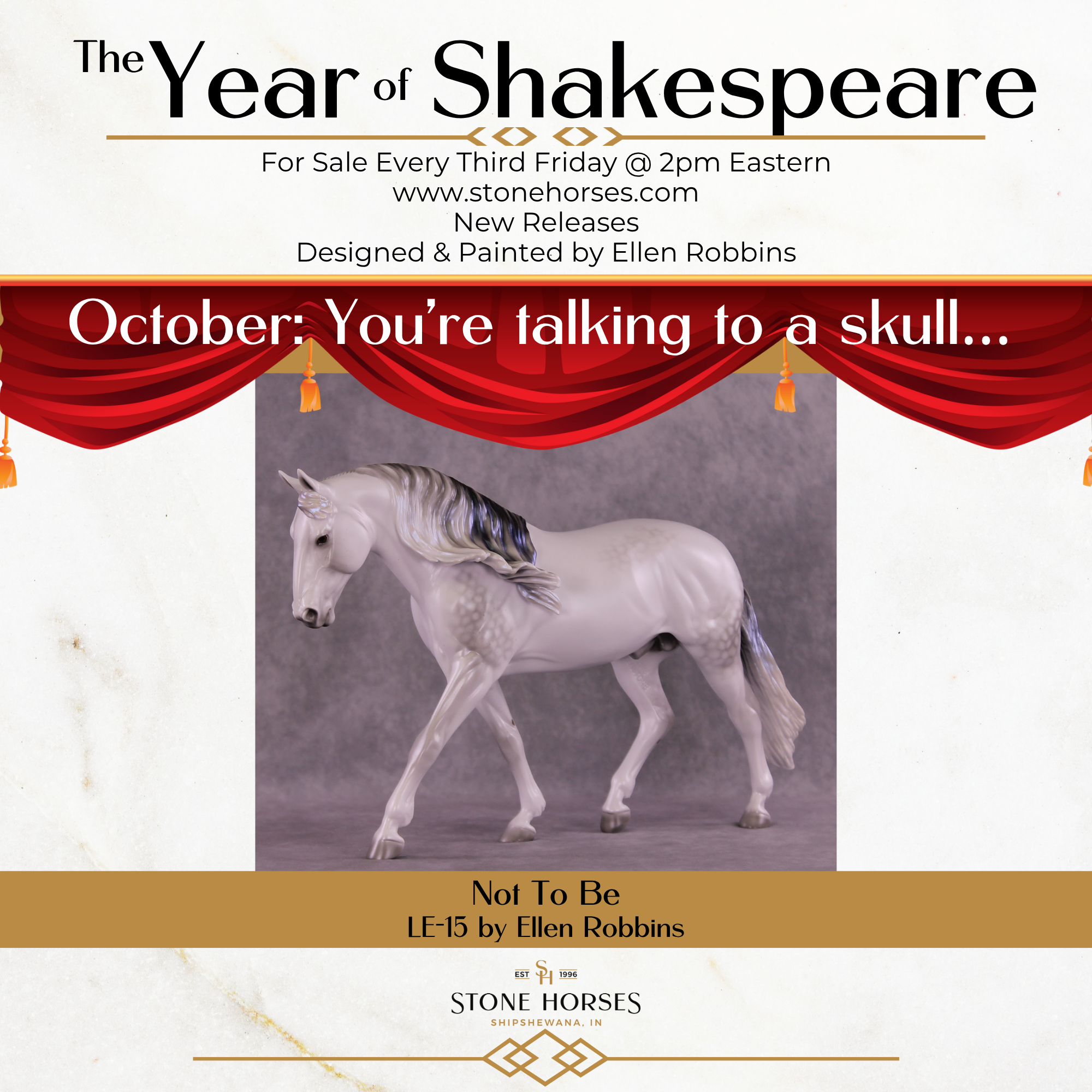 For October’s Classic Literature offering, we continue our Year of Shakespeare with the tale of Hamlet. Designed and painted by Ellen Robbins, she describes the ties to the story these models display much better than we can, and as always, we encourage you to read the materials in this listing images.