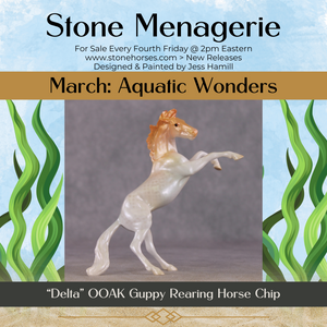 This month's Menagerie features a stunning collection of fish-inspired chip model horses. Each piece, crafted with Jess Hamill's artistic touch, features intricate details capturing the beauty and diversity of fish from rivers, lakes, seas, and oceans. Dive into this enchanting collection with us!
