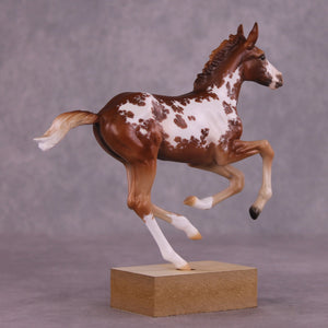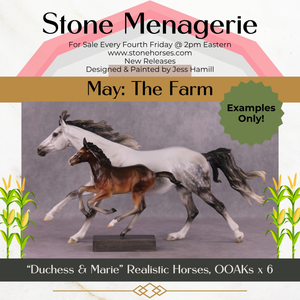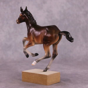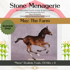 Your Pimento order will be a surprise – this is a group of six OOAK foals in surprise realistic foal colors all by Jess, all with fuzzy ears forward as shown in the photo. They are priced at $399.99 and all finish options are available, and they will ship within a couple of weeks, pending getting finish coats applied