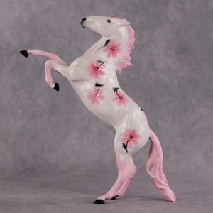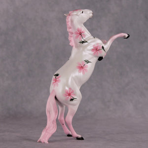 Dawn Quick beautifully captures a strawberry roan to paint on the pony for this month's Flower Series. This month's flower is the Daisy, which symbolizes cheerfulness, beauty and affection.