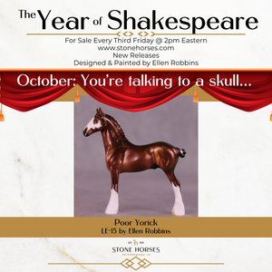 For October’s Classic Literature offering, we continue our Year of Shakespeare with the tale of Hamlet. Designed and painted by Ellen Robbins, she describes the ties to the story these models display much better than we can, and as always, we encourage you to read the materials in this listing images.