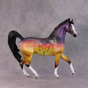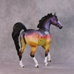 Welcome to our Fantastical Fantasy series, designed and painted by Dawn Quick! For June, Dawn brings us fairy magic in two lovely designs on our Arabian Mare with her tail raised high and a customized short mane. We will take up to 30 orders for this series split across the two designs, scheduled to produce in late fall/early winter.