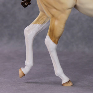 Tiffany customized this large mule to have customer favorite airplane ears! Plus, a uniquely tied up knotted tail, and finished with a really cool amber champagne tobiano with subtle reverse dappling over her topline. There is no other mule in the world like this one, and Tiffany did such a good job bringing these concepts together!