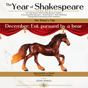 It is with bittersweet celebration that we close out this year's Classic Literature Year of Shakespeare line by recognizing The Winter's Tale, with two lovely factory customized Ideal Stock Horses, and six runs of five chips each - all designed and painted by Ellen Robbins.