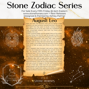 Prepare for a whole lot of Leo Celebration in our Zodiac series this month! Your author is a Leo, and in true Leo fashion we go BIG, and at Stone Horses that means a ton of factory customizing paired with color designs that will knock your socks off. Ashley Palmer is a true visionary and really channeled big Leo energy into this month’s pair of stunning extra customized horses. Because, who better to represent the most regal of signs than our Andalusian stallion?